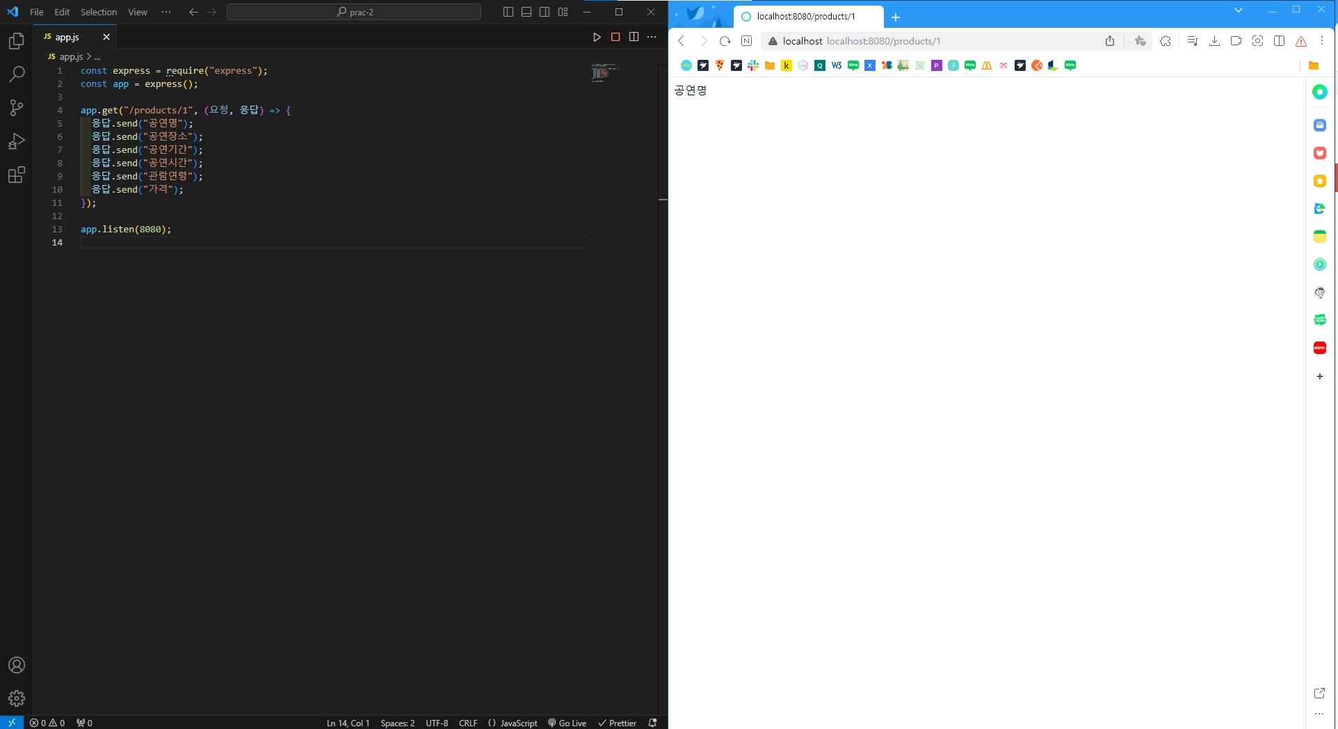 그리고 우리가 또 생각할 부분이 생기는데요 예시를 든 공연은 하나가 아니죠 보통은 수십수백의 공연이 존재합니다. 그러면 app.get('/products/1', (요청, 응답)=>{}) 이 걸 수십 수백 개를 만들어야 할까요? 아닙니다. 이때 우리가 사용하면 좋은 게 바로 라우터 매개변수입니다. 그렇다면 라우터 매개변수는 어떻게 사용하나요?