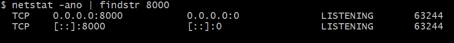 순서대로 프로토콜 / 로컬주소 / 외부주소 / 상태 / PID입니다.